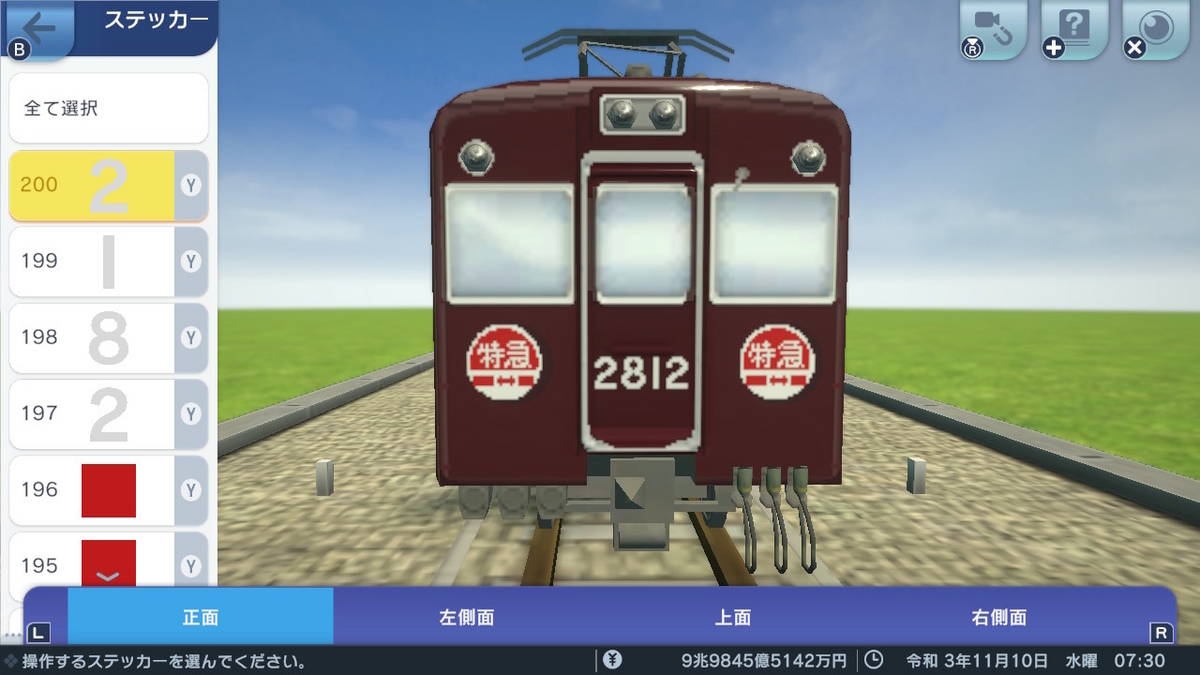 用意した資料を元に拘りまくった再現車両を作るぞ!・・・あれ、ステッカーが設置出来ない!?なんてことは日常茶飯事だと思います。このゲームの列車開発はそれぞれの面にステッカー上限が設けられており、それを超えない様に作る必要があります。